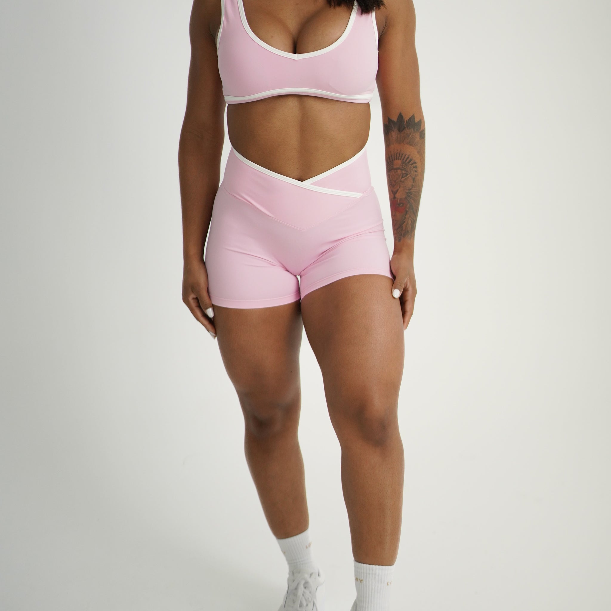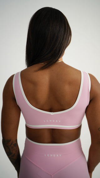The Cassia Contrast Trim bra features sophisticated contrast trim detailing that elevates your athletic wardrobe with an elegant aesthetic. The strategic design provides essential support while maintaining a refined appearance. Pair seamlessly with our matching shorts or flare leggings to create a coordinated ensemble that transitions effortlessly from workout to casual wear.